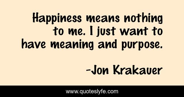 This page presents the quote "Happiness means nothing to me. I just want to have meaning and purpose.". Author of this quote is Jon Krakauer. This quote is about me, meaning, purpose,.