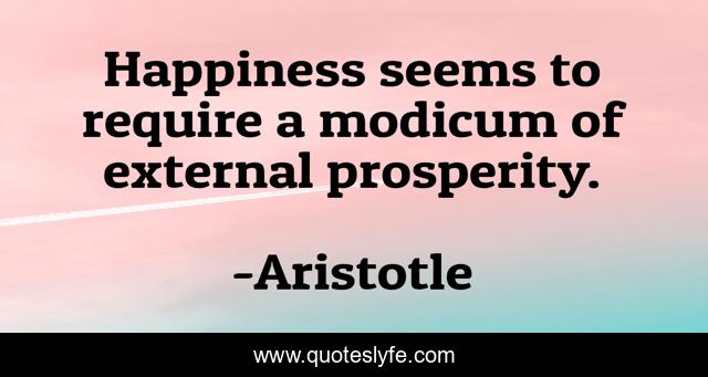 This page presents the quote "Happiness seems to require a modicum of external prosperity.". Author of this quote is Aristotle. .