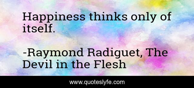 This page presents the quote "Happiness thinks only of itself.". Author of this quote is Raymond Radiguet, The Devil in the Flesh. This quote is about human-nature, selfishness-never-bothered, happiness,.