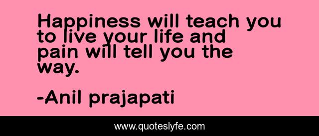 This page presents the quote "Happiness will teach you to live your life and pain will tell you the way.". Author of this quote is Anil prajapati. This quote is about anilp264, anil-prajapati, pain, positive, motivational, life, insipirational, optimistic, happiness,.
