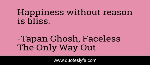 "Tapan Ghosh, Faceless The Only Way Out Quotes." Quoteslyfe.com, 2025. Mon. 08 Dec. 2025. <https://www.quoteslyfe.com/quote/Happiness-without-reason-is-bliss-17079>.