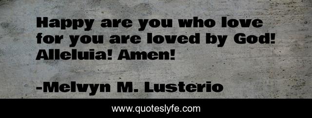 This page presents the quote "Happy are you who love for you are loved by God! Alleluia! Amen!". Author of this quote is Melvyn M. Lusterio. This quote is about wise, triumph, truth,.
