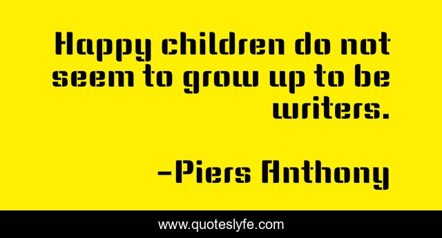 This page presents the quote "Happy children do not seem to grow up to be writers.". Author of this quote is Piers Anthony. This quote is about happy, writers, children, writing,.