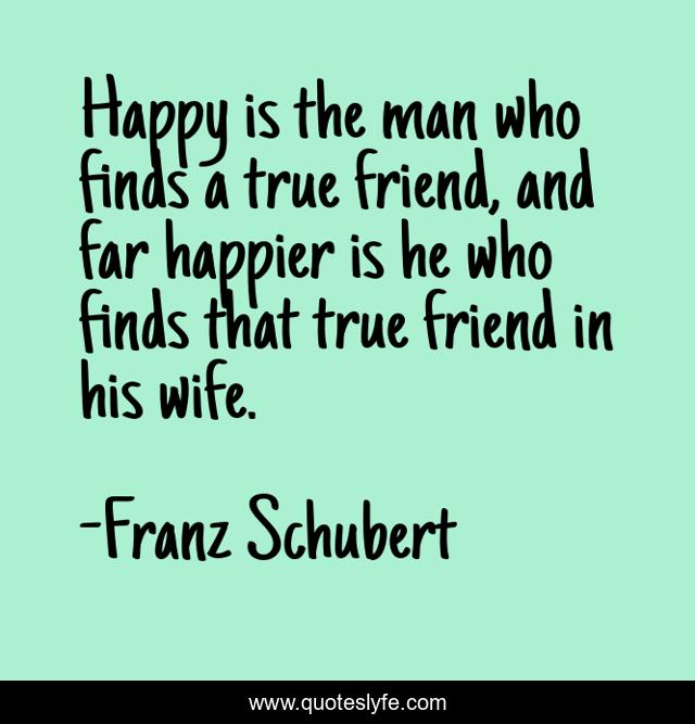 This page presents the quote "Happy is the man who finds a true friend, and far happier is he who finds that true friend in his wife.". Author of this quote is Franz Schubert. This quote is about happy, true friend, wife,.