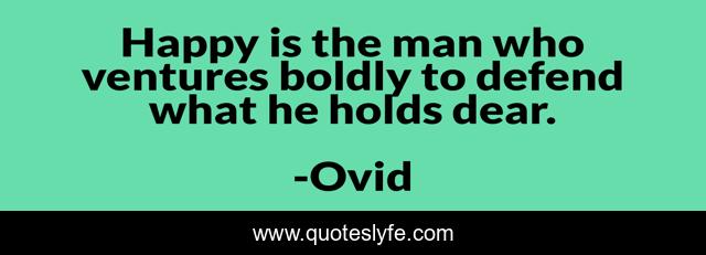 This page presents the quote "Happy is the man who ventures boldly to defend what he holds dear.". Author of this quote is Ovid. .