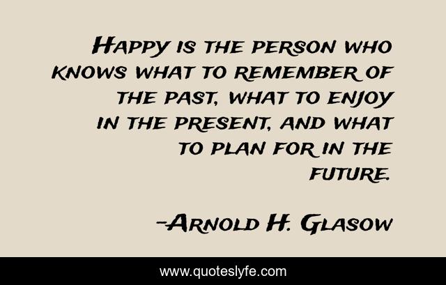 This page presents the quote "Happy is the person who knows what to remember of the past, what to enjoy in the present, and what to plan for in the future.". Author of this quote is Arnold H. Glasow. This quote is about past, remember, happy,.