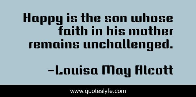 This page presents the quote "Happy is the son whose faith in his mother remains unchallenged.". Author of this quote is Louisa May Alcott. This quote is about happy, mother, son,.