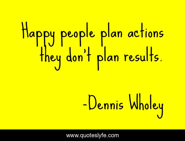 This page presents the quote "Happy people plan actions they don't plan results.". Author of this quote is Dennis Wholey. .
