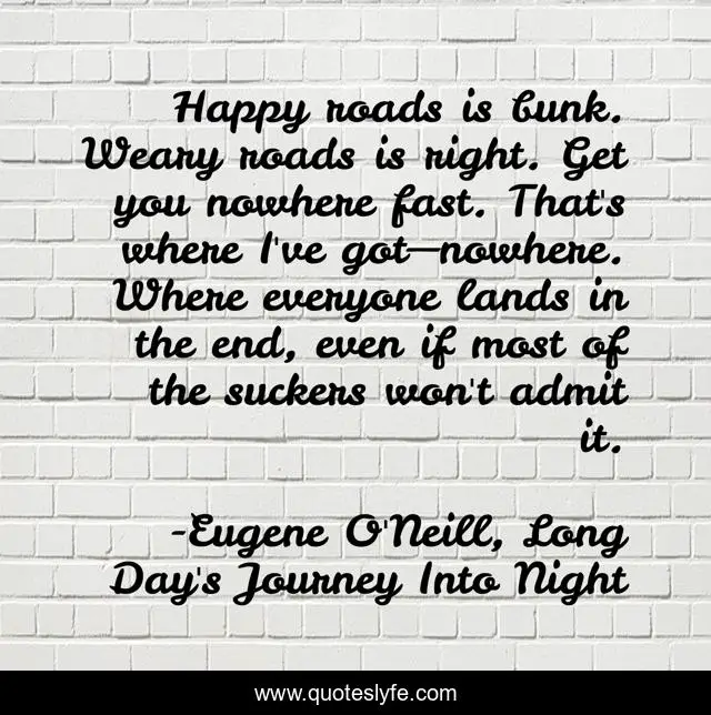 "Eugene O'Neill, Long Day's Journey Into Night Quotes." Quoteslyfe.com, 2025. Sat. 06 Dec. 2025. <https://www.quoteslyfe.com/quote/Happy-roads-is-bunk-Weary-roads-is-17026>.