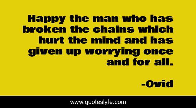 This page presents the quote "Happy the man who has broken the chains which hurt the mind and has given up worrying once and for all.". Author of this quote is Ovid. .