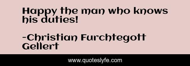 "Christian Furchtegott Gellert Quotes." Quoteslyfe.com, 2025. Sat. 06 Dec. 2025. <https://www.quoteslyfe.com/quote/Happy-the-man-who-knows-his-duties-266665>.