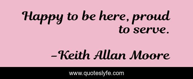 "Keith Allan Moore Quotes." Quoteslyfe.com, 2025. Fri. 05 Dec. 2025. <https://www.quoteslyfe.com/quote/Happy-to-be-here-proud-to-serve-195879>.