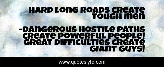 This page presents the quote "Hard long roads create tough men". Author of this quote is dangerous hostile paths create powerful people! Great difficulties create giant guys!. .