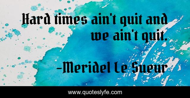 "Meridel Le Sueur Quotes." Quoteslyfe.com, 2025. Sat. 06 Dec. 2025. <https://www.quoteslyfe.com/quote/Hard-times-ain-t-quit-and-we-271639>.