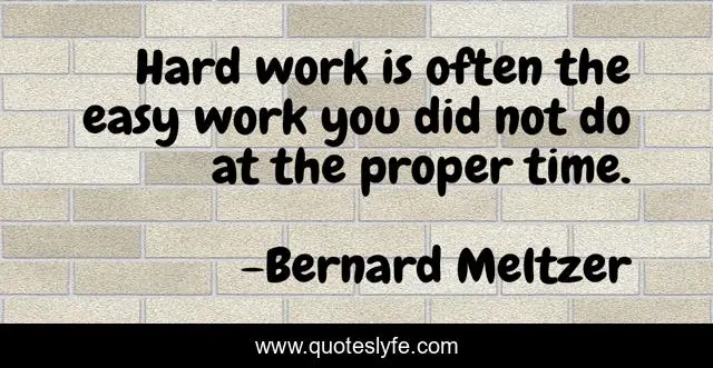 This page presents the quote "Hard work is often the easy work you did not do at the proper time.". Author of this quote is Bernard Meltzer. This quote is about time-management, work,.