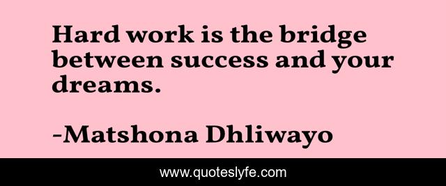 "Matshona Dhliwayo Quotes." Quoteslyfe.com, 2025. Sun. 07 Dec. 2025. <https://www.quoteslyfe.com/quote/Hard-work-is-the-bridge-between-success-109167>.