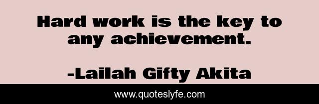 This page presents the quote "Hard work is the key to any achievement.". Author of this quote is Lailah Gifty Akita. This quote is about achievement, hard-work, success, persistence,.