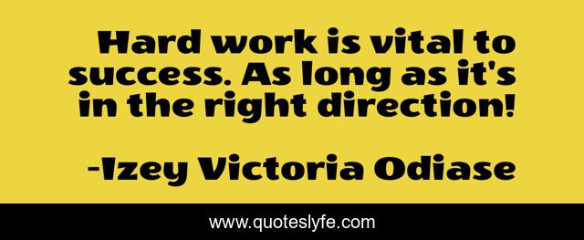 This page presents the quote "Hard work is vital to success. As long as it's in the right direction!". Author of this quote is Izey Victoria Odiase. This quote is about motivation, success, hard-work, entrepreneur, positive, motivational, confidence, quotes, optimistic,.