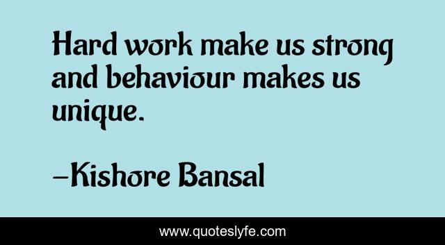 This page presents the quote "Hard work make us strong and behaviour makes us unique.". Author of this quote is Kishore Bansal. This quote is about behaviour, unique, hard-work,.