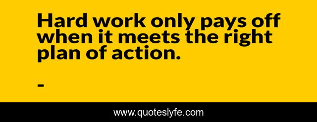 This page presents the quote "Hard work only pays off when it meets the right plan of action.". Author of this quote is . This quote is about an-effective-plan-of-action, hard-work-pays, having-the-right-plan-of-action, edmond-mbiaka, hard-work-pays-off, working-hard,.