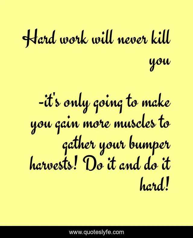 "it's only going to make you gain more muscles to gather your bumper harvests! Do it and do it hard! Quotes." Quoteslyfe.com, 2025. Fri. 05 Dec. 2025. <https://www.quoteslyfe.com/quote/Hard-work-will-never-kill-you-88778>.