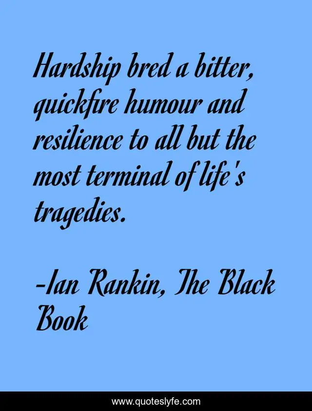 "Ian Rankin, The Black Book Quotes." Quoteslyfe.com, 2025. Fri. 05 Dec. 2025. <https://www.quoteslyfe.com/quote/Hardship-bred-a-bitter-quickfire-humour-and-56143>.