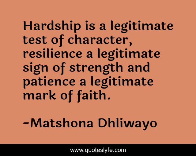 "Matshona Dhliwayo Quotes." Quoteslyfe.com, 2025. Sat. 06 Dec. 2025. <https://www.quoteslyfe.com/quote/Hardship-is-a-legitimate-test-of-character-201070>.