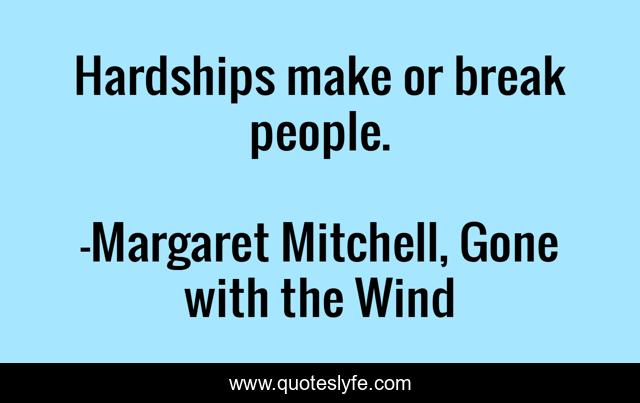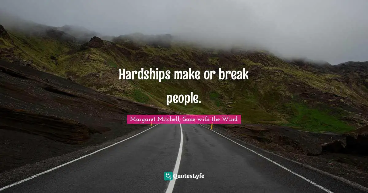 "Margaret Mitchell, Gone with the Wind Quotes." Quoteslyfe.com, 2025. Mon. 29 Dec. 2025. <https://www.quoteslyfe.com/quote/Hardships-make-or-break-people-2287>.
