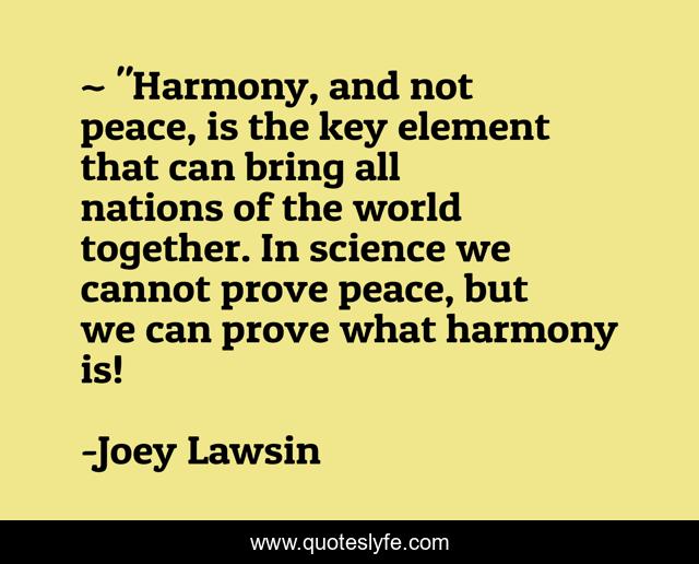 "Joey Lawsin Quotes." Quoteslyfe.com, 2025. Sat. 06 Dec. 2025. <https://www.quoteslyfe.com/quote/Harmony-and-not-peace-is-the-key-223382>.