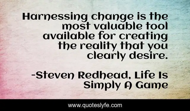 "Steven Redhead, Life Is Simply A Game Quotes." Quoteslyfe.com, 2025. Fri. 05 Dec. 2025. <https://www.quoteslyfe.com/quote/Harnessing-change-is-the-most-valuable-tool-60271>.