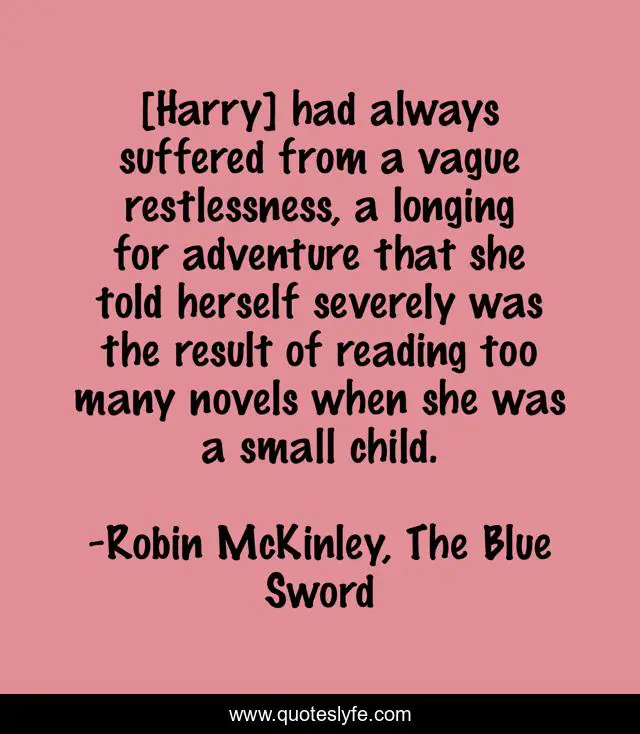This page presents the quote "[Harry] had always suffered from a vague restlessness, a longing for adventure that she told herself severely was the result of reading too many novels when she was a small child.". Author of this quote is Robin McKinley, The Blue Sword. .