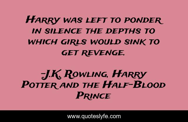 This page presents the quote "Harry was left to ponder in silence the depths to which girls would sink to get revenge.". Author of this quote is J.K. Rowling, Harry Potter and the Half-Blood Prince. This quote is about girls, revenge,.