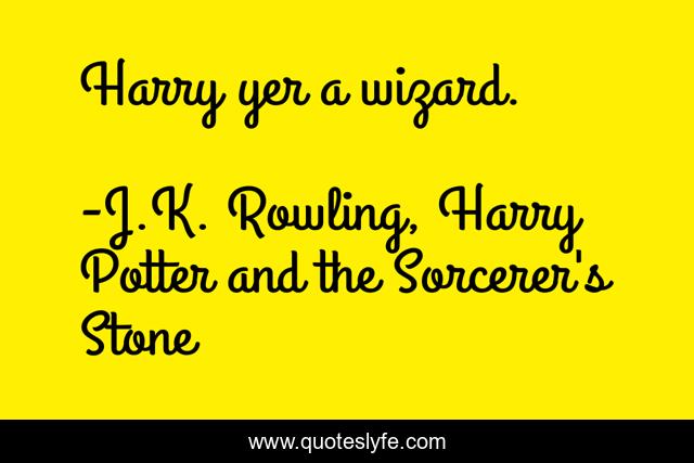 This page presents the quote "Harry―yer a wizard.". Author of this quote is J.K. Rowling, Harry Potter and the Sorcerer's Stone. This quote is about fantasy, magic, harry-potter,.