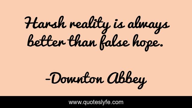 This page presents the quote "Harsh reality is always better than false hope.". Author of this quote is Downton Abbey. This quote is about enthusiasm, false-hope, inspirational, reality,.