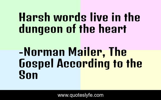 This page presents the quote "Harsh words live in the dungeon of the heart". Author of this quote is Norman Mailer, The Gospel According to the Son. .