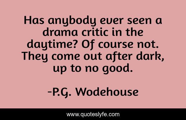 This page presents the quote "Has anybody ever seen a drama critic in the daytime? Of course not. They come out after dark, up to no good.". Author of this quote is P.G. Wodehouse. This quote is about critics, drama,.