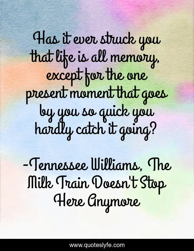 "Tennessee Williams, The Milk Train Doesn't Stop Here Anymore Quotes." Quoteslyfe.com, 2025. Fri. 05 Dec. 2025. <https://www.quoteslyfe.com/quote/Has-it-ever-struck-you-that-life-3500>.