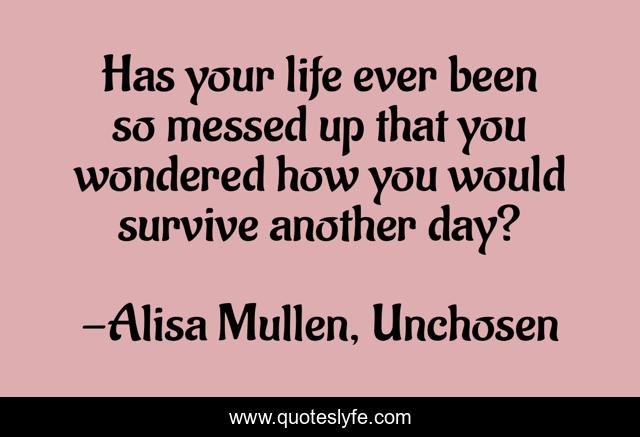 This page presents the quote "Has your life ever been so messed up that you wondered how you would survive another day?". Author of this quote is Alisa Mullen, Unchosen. This quote is about death-of-a-loved-one, love, love-story, affection,.