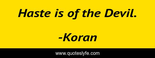 This page presents the quote "Haste is of the Devil.". Author of this quote is Koran. .