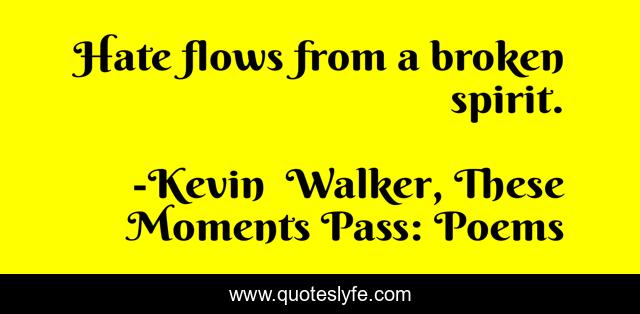 This page presents the quote "Hate flows from a broken spirit.". Author of this quote is Kevin Walker, These Moments Pass: Poems. This quote is about life, hate, poetry,.
