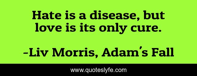 "Liv Morris, Adam's Fall Quotes." Quoteslyfe.com, 2025. Sun. 07 Dec. 2025. <https://www.quoteslyfe.com/quote/Hate-is-a-disease-but-love-is-191464>.