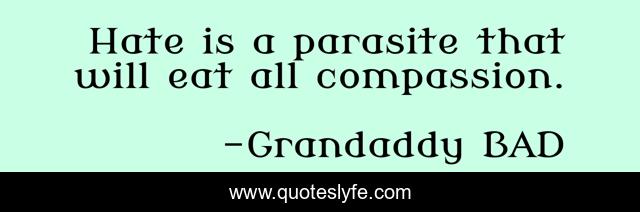 This page presents the quote "Hate is a parasite that will eat all compassion.". Author of this quote is Grandaddy BAD. This quote is about life, hate,.