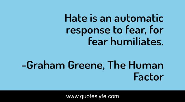 This page presents the quote "Hate is an automatic response to fear, for fear humiliates.". Author of this quote is Graham Greene, The Human Factor. This quote is about fear, hate,.