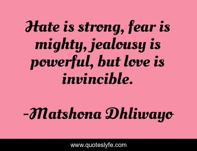 "Matshona Dhliwayo Quotes." Quoteslyfe.com, 2025. Mon. 08 Dec. 2025. <https://www.quoteslyfe.com/quote/Hate-is-strong-fear-is-mighty-jealousy-49652>.