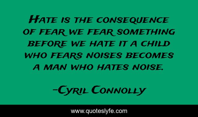 This page presents the quote "Hate is the consequence of fear we fear something before we hate it a child who fears noises becomes a man who hates noise.". Author of this quote is Cyril Connolly. .
