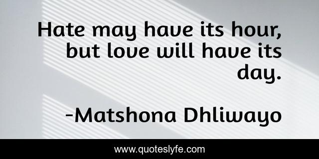 "Matshona Dhliwayo Quotes." Quoteslyfe.com, 2025. Sat. 06 Dec. 2025. <https://www.quoteslyfe.com/quote/Hate-may-have-its-hour-but-love-198836>.