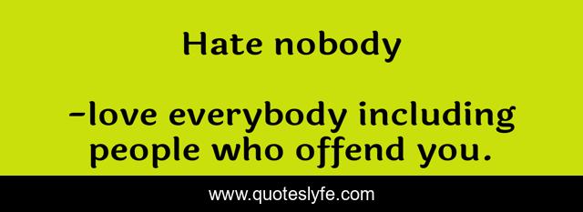 "love everybody including people who offend you. Quotes." Quoteslyfe.com, 2025. Mon. 08 Dec. 2025. <https://www.quoteslyfe.com/quote/Hate-nobody-51869>.