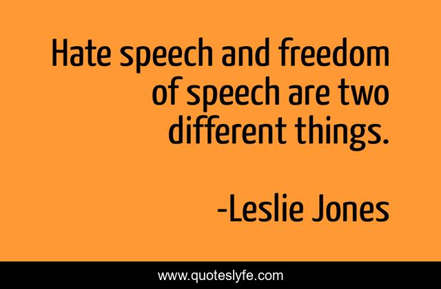 This page presents the quote "Hate speech and freedom of speech are two different things.". Author of this quote is Leslie Jones. This quote is about hate, freedom of speech,.