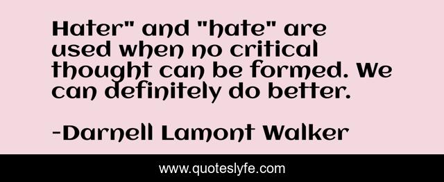 This page presents the quote "Hater" and "hate" are used when no critical thought can be formed. We can definitely do better.". Author of this quote is Darnell Lamont Walker. This quote is about critical-thought, hate, hater,.