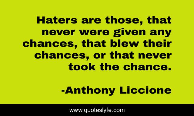 "Anthony Liccione Quotes." Quoteslyfe.com, 2025. Sun. 07 Dec. 2025. <https://www.quoteslyfe.com/quote/Haters-are-those-that-never-were-given-145282>.